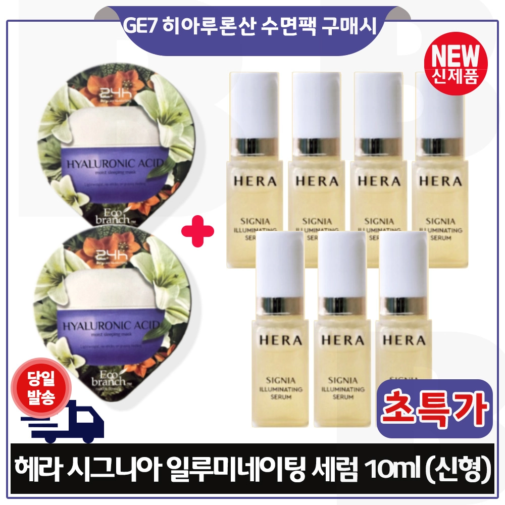 지이세븐 히아루론산 수면팩 2개 구매시 헤라 시그니아 일루미네이팅 세럼 10ml x7개 (총 70ml) 최신형 6세대제품 초특가 한정