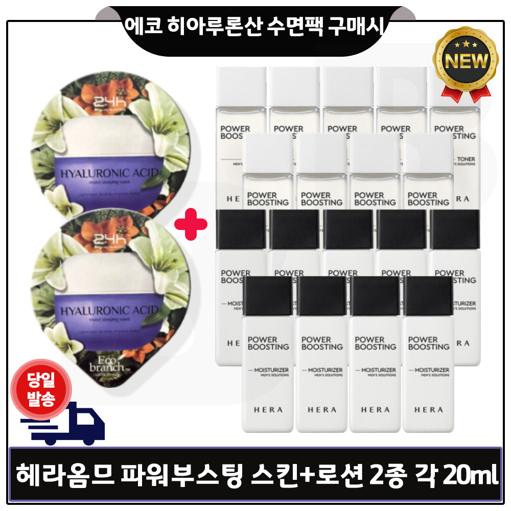 지이세븐 히아루론산 수면팩 2개 구매+헤라옴므 파워부스팅 스킨+로션2종 각 20mlx9개 (총 360ml) 최신형