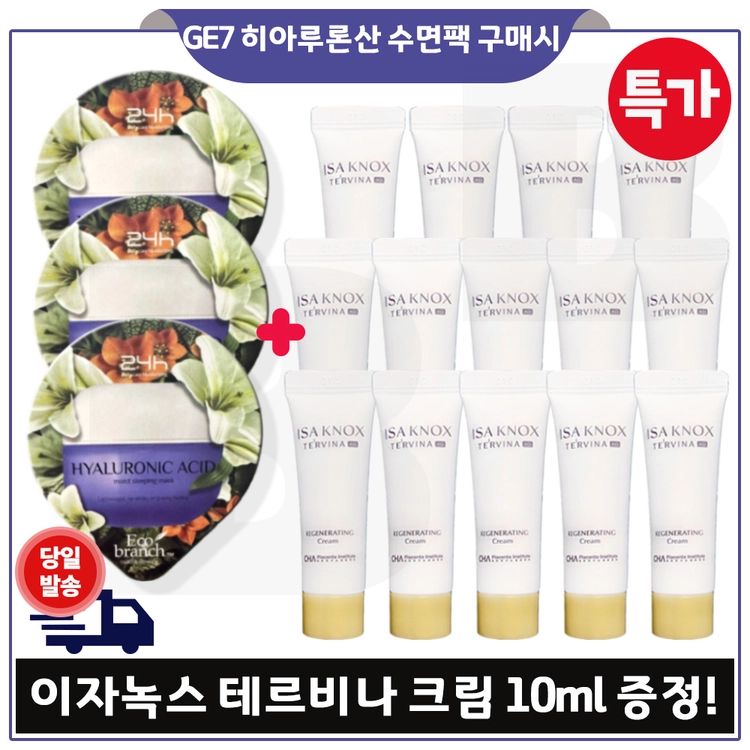 지이세븐 히아루론산 수면팩 3개 구매+이자녹스 테르비나 크림 (튜브형) 10mlx13개 (총 130ml) 특가판매