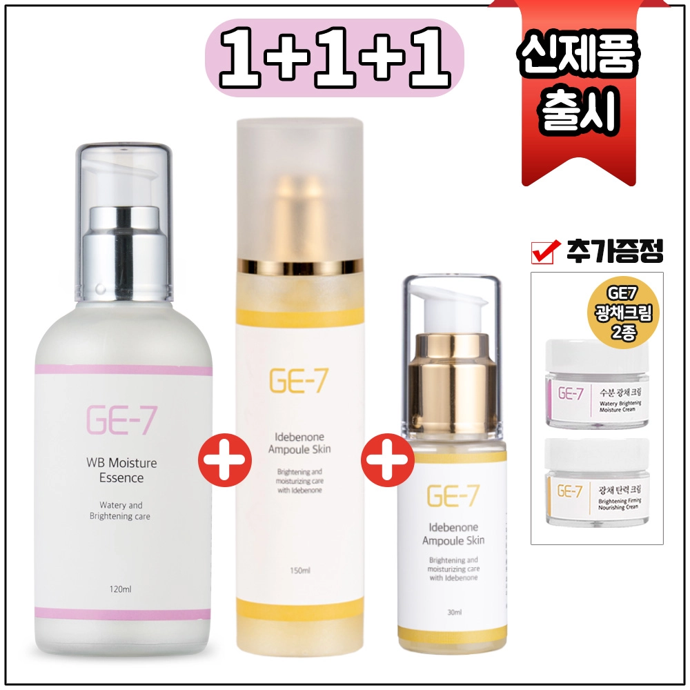 (1+1+1) GE7 광채탄력 에센스 120ml+GE7 앰플스킨 150ml+GE7 앰플스킨 30ml+GE7 광채크림 2종 각 5mlx2개