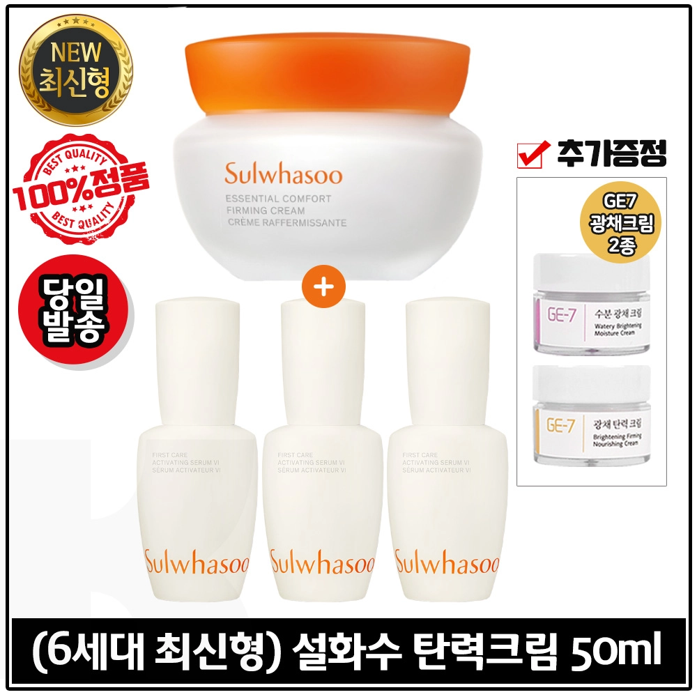 최신형) 설화수 탄력크림 50ml+윤조에센스 15mlx3개 (총 45ml) 6세대제품+GE7 광채크림2종 (각 5ml)
