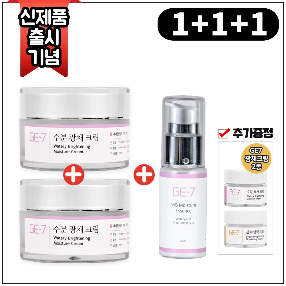 (1+1+1) GE7 수분광채크림 50mlx2개 (총 100ml) + GE7 수분광채에센스 30ml + GE7 광채크림 2종 (각 5ml)
