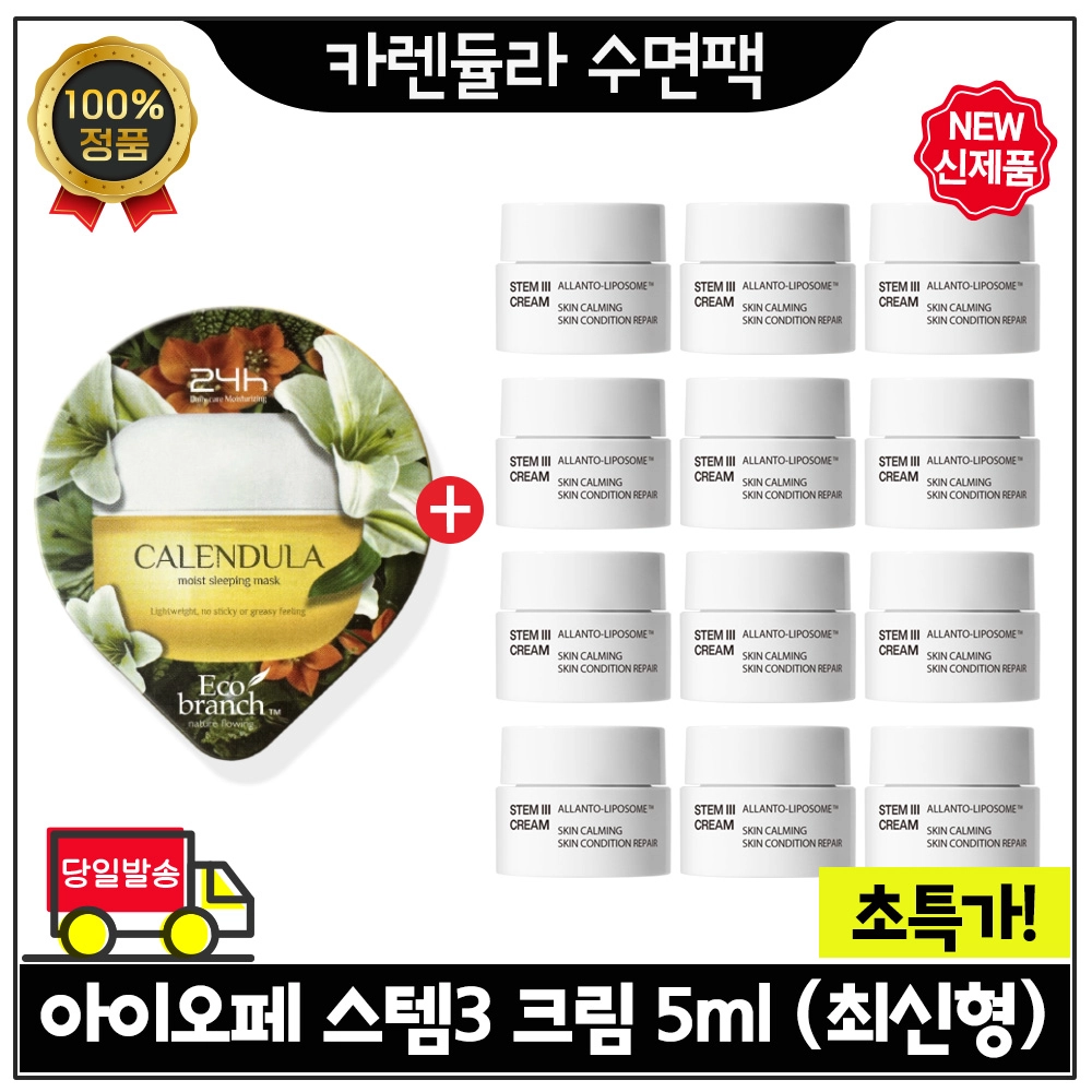 지이세븐 카렌듈라 수면팩 구매시 아이오페 스템3 크림 5ml x12개 (총 60ml) 최신형 6세대/흰색