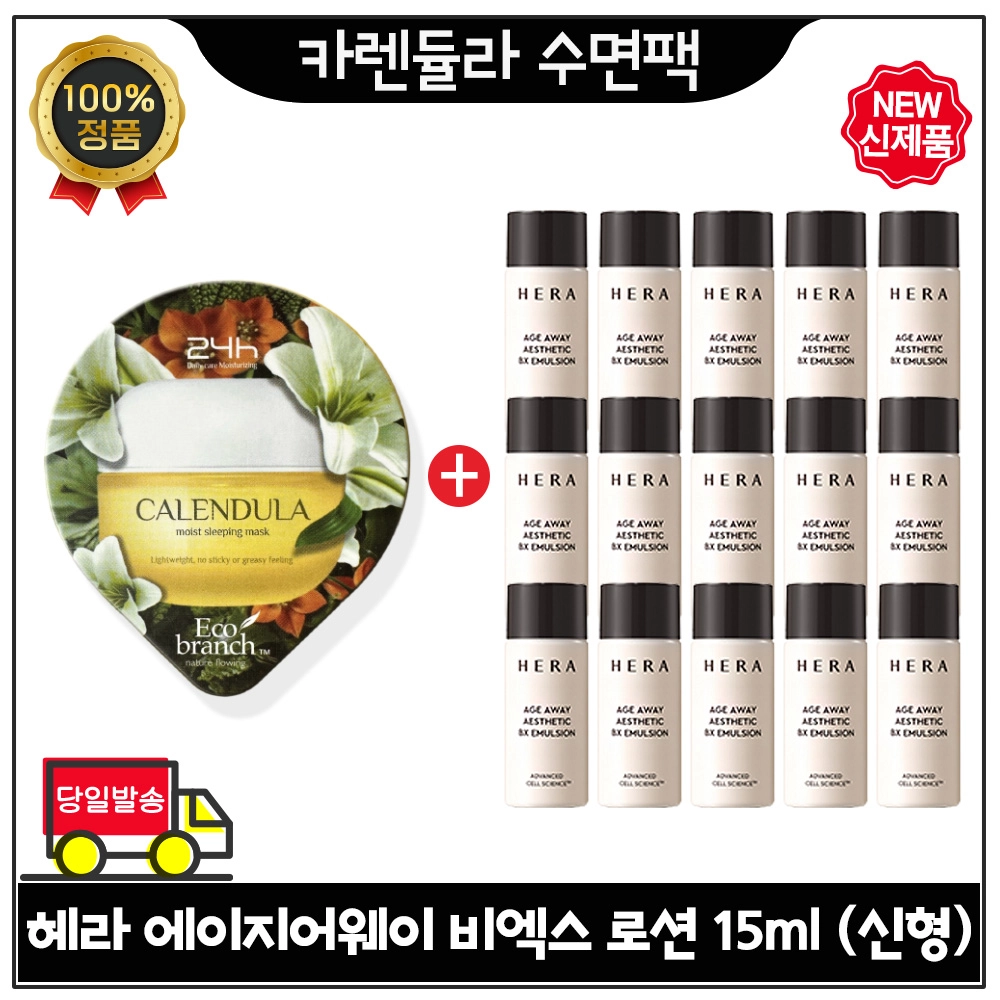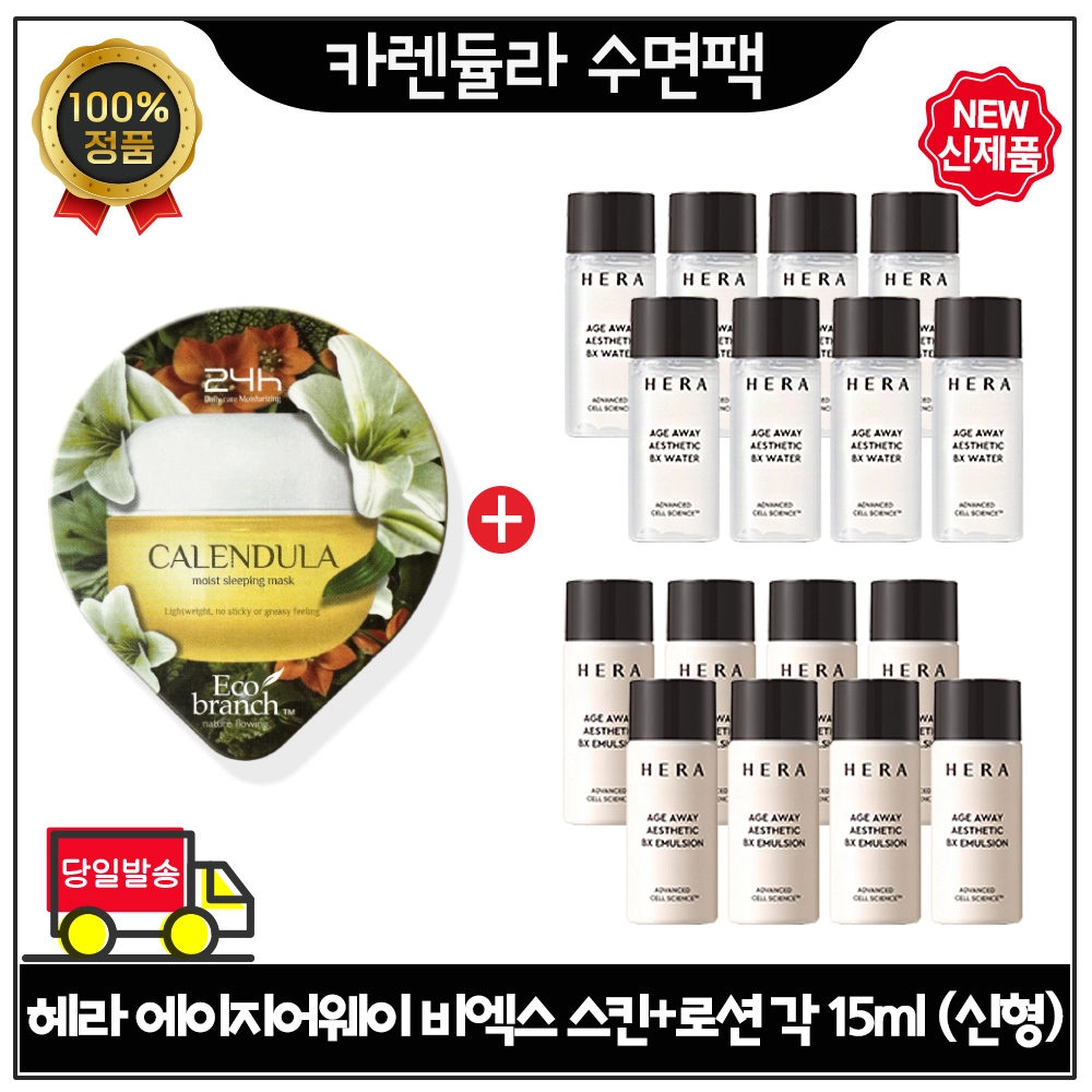 지이세븐 카렌듈라 수면팩 구매시 헤라 에이지어웨이 비엑스 스킨+로션 2종 각 15ml x8개 (총 240ml) 최신형 6세대 특가