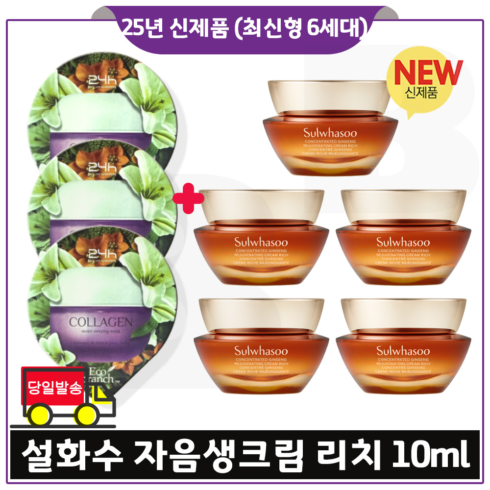 GE7 콜라겐 수면팩 3개 구매/설화수 자음생크림 리치 10mlx5개 (총 50ml) 최신형 6세대