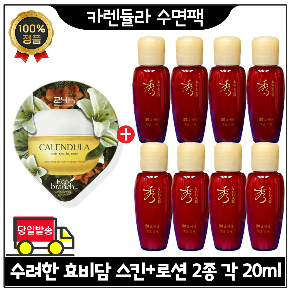 지이세븐 카렌듈라 수면팩 구매시 수려한 효비담 발효스킨+로션 2종 각 20ml x4개 (총 160ml) 특가